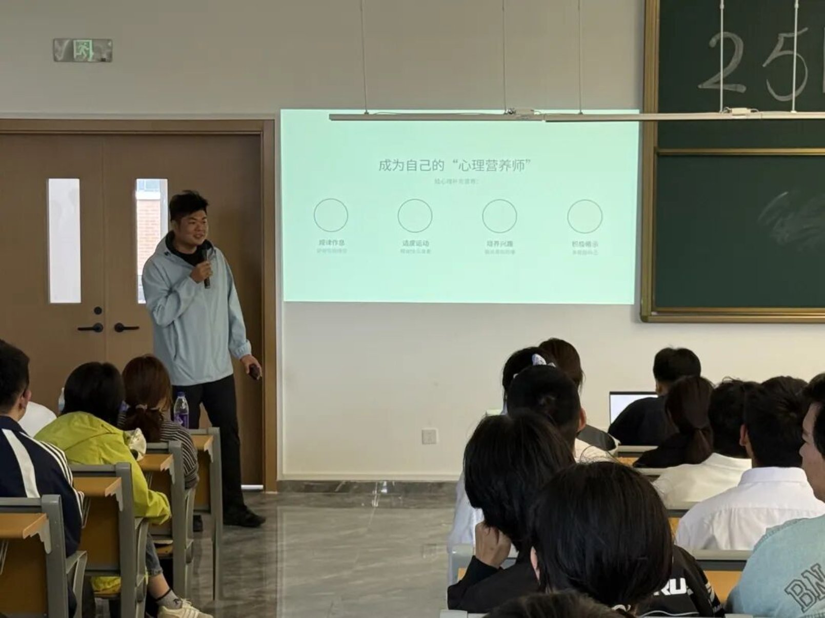 在心理健康教育宣讲中,姜金辰老师向大家普及心理健康知识,帮助同学们提高心理调适能力。姜老师讲解情绪管理、压力应对、积极自我对话等实用的心理调适技巧,通过互动练习帮助同学们掌握方法。他倡导以积极乐观的心态面对学习与生活中的挑战,鼓励同学们建立健康的人际关系,有效寻求支持。