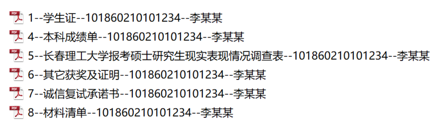 2. 内部文件命名要求:“序号--电子版文件名称--考生编号--姓名”,序号对应项参照下表。
